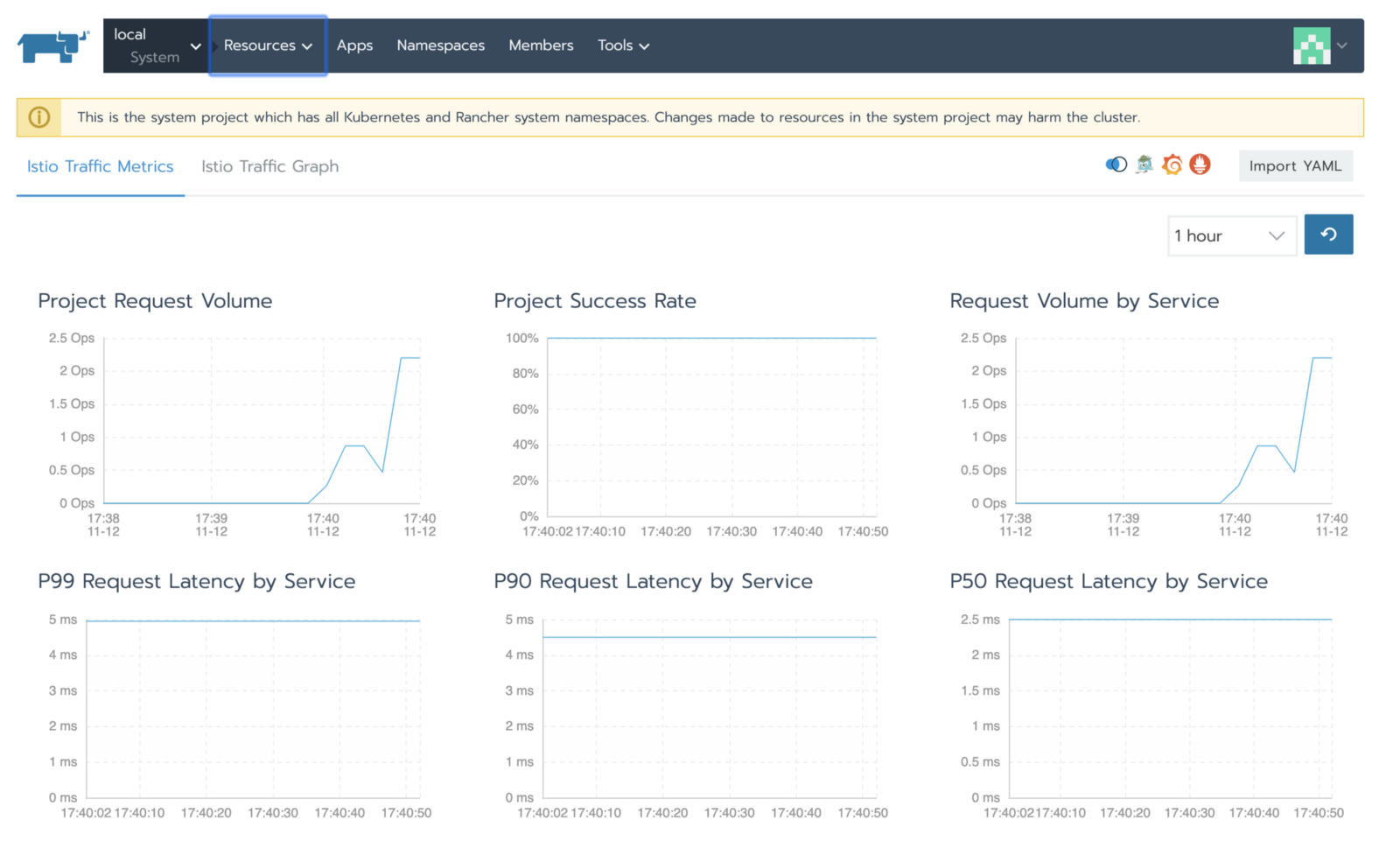 从UI上方的菜单栏中【资源】项,选择Istio。你可以看到以下图表: