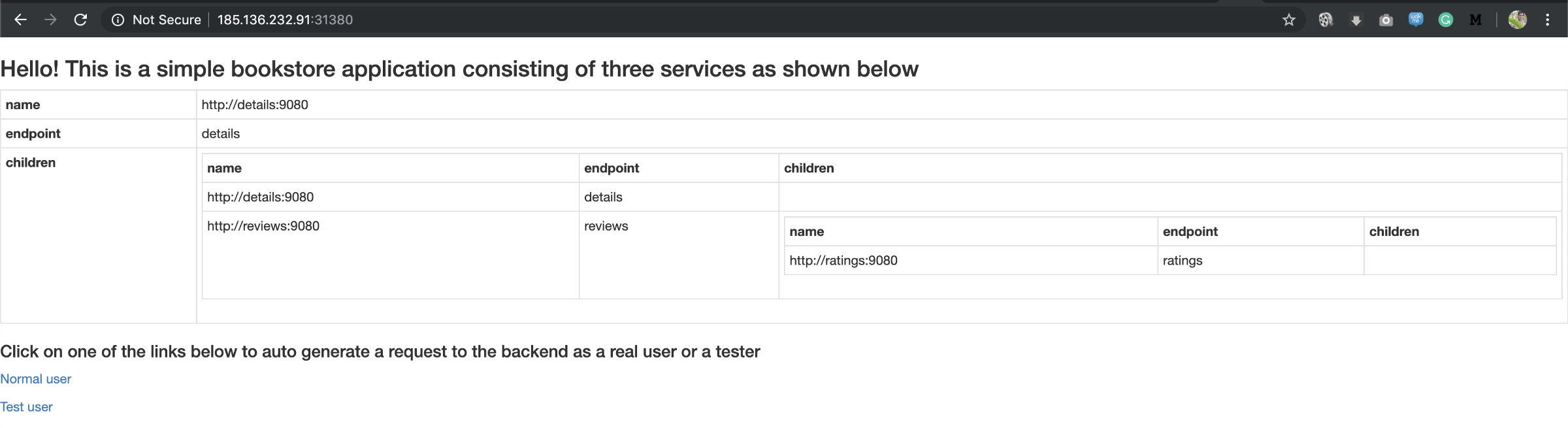 ratings ClusterIP 192.168.207.69 <none> 9080/TCP 10m