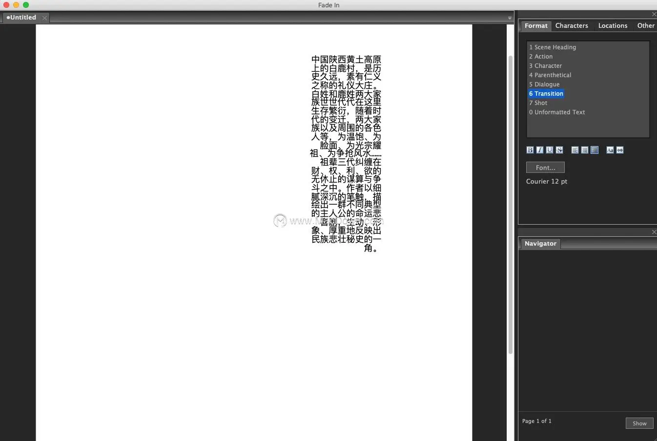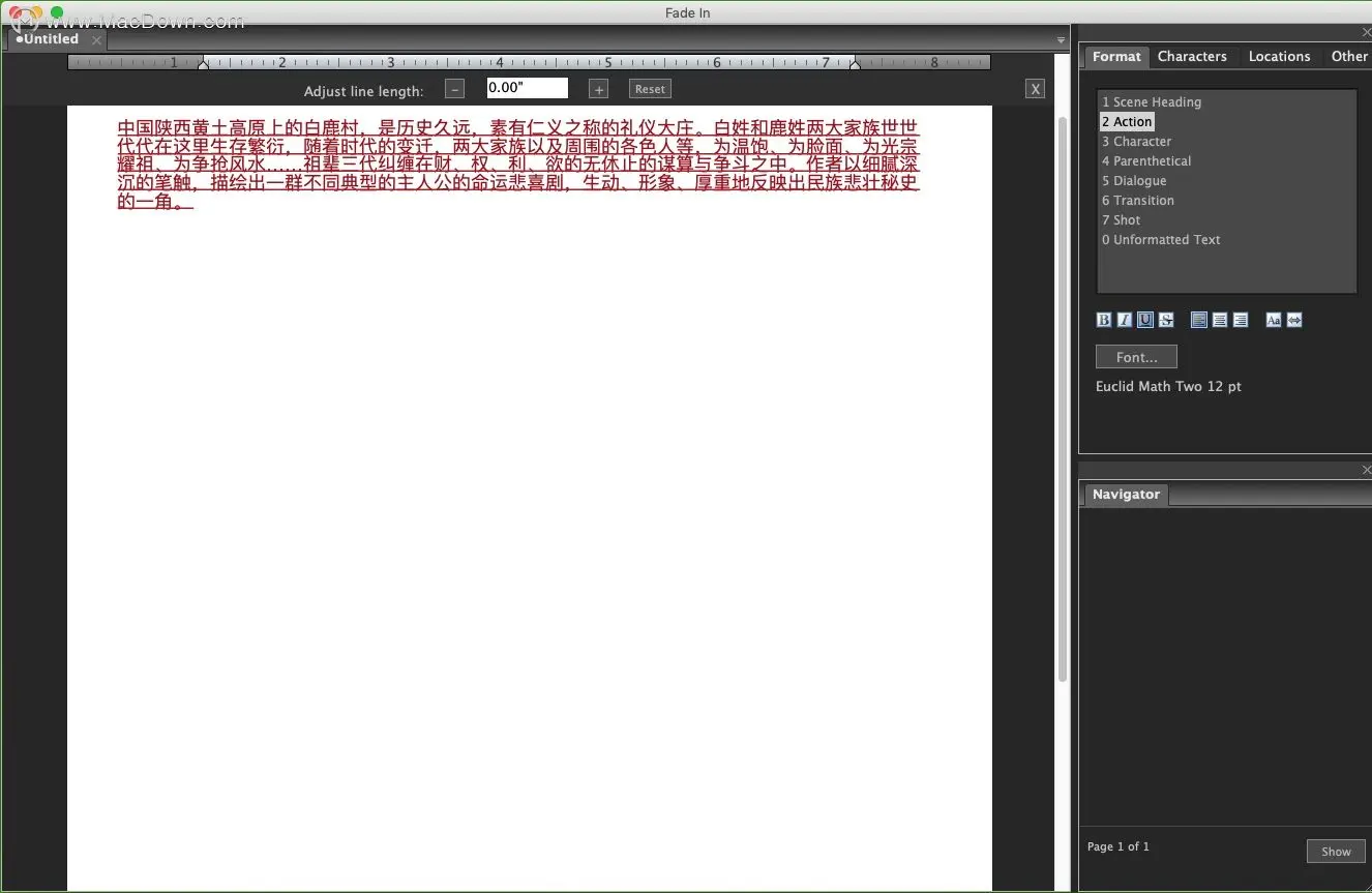 想要自己创作小说剧本吗?试试Fade In Pro for Mac激活版吧!Fade In Pro Mac版是一款运行在MacOS平台上的剧本小说编辑软件。Fade In Pro可以帮助我们进行剧本的创作或是小说的创作,自动标注页码并根据行业标准格式化文本,概述、情节的组织、重点描述等,简单实用的一款软件。Mac下载Macdown为大家提供Fade In Pro for Mac(剧本小说编辑软件) v3.0.562激活版下载资源,有需要的朋友请放心下载!