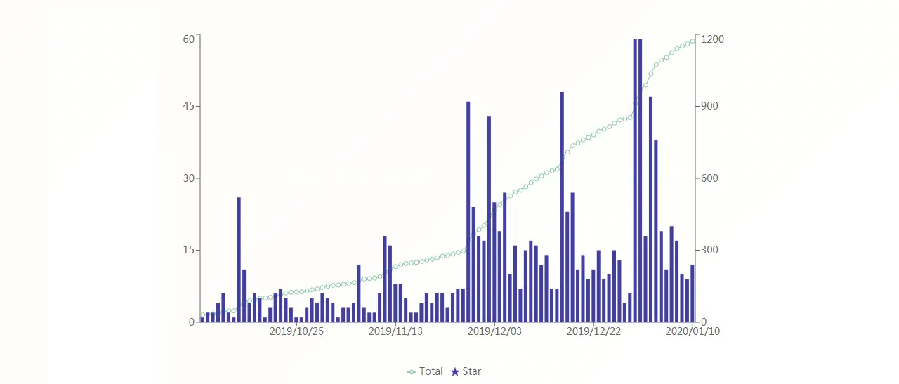 新蜂商城已经开源了 3 个多月左右的时间,在 2019 年的年末,仓库的 Star 数量冲破了 1000,整理本篇文章的时间是 2020 年 1 月 12 日,目前的 Star 数量是 1180 左右,在这里向喜欢这个项目的朋友道个谢,同时也做一个简单的记录,项目的 Star 统计图如下所示: