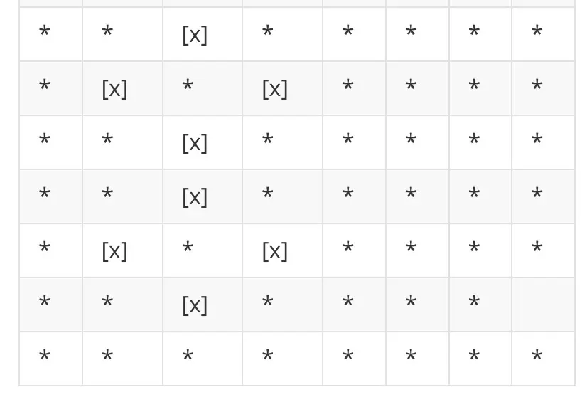 注意 x 的位置,因为第二排有两个一样的连在一起,移动一步就能消除的情况有很多种方式,左右两边各有3种情况,找到一个这种,就不是死图了。