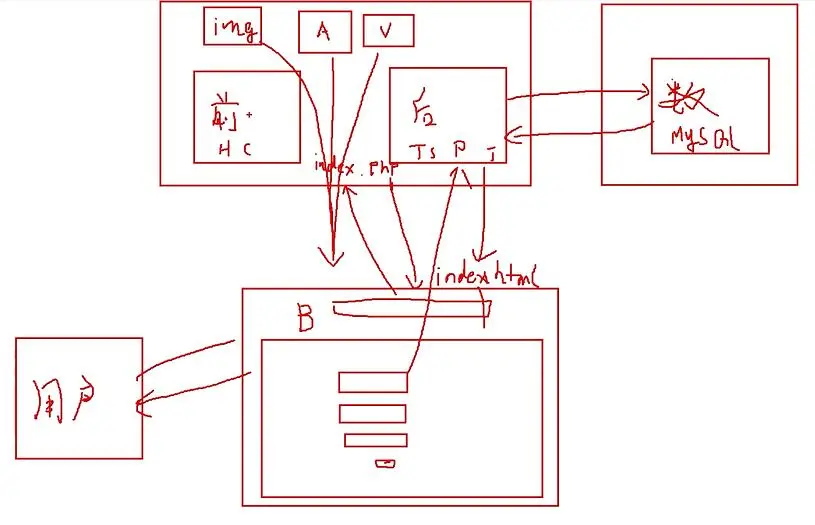服务主要分为页面和数据,页面有静态页面(html,htm)和动态页面(php,jsp),php是动态生成一个html页面,早期php功能主要是将表单数据提交给数据库,增删改查,静态页面和动态页面在同一个服务中,数据靠数据库(MySQL、SQL server等)存储,放在数据库服务器中。