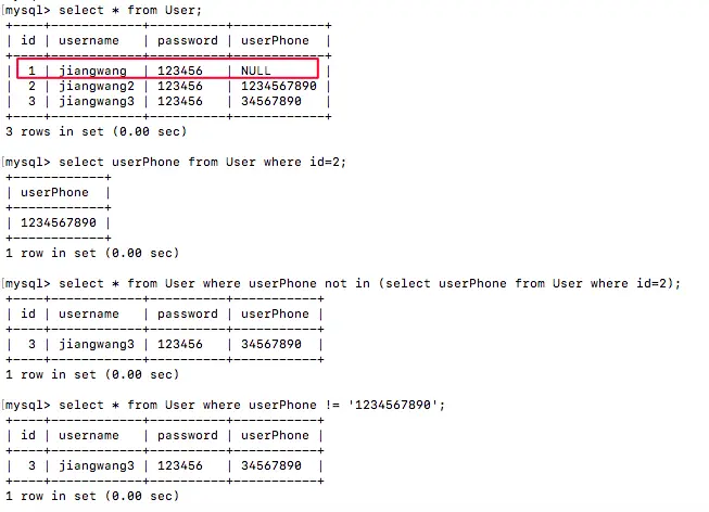 - null值在使用 !=、not in等负向条件查询时会被忽略,造成结果不准确