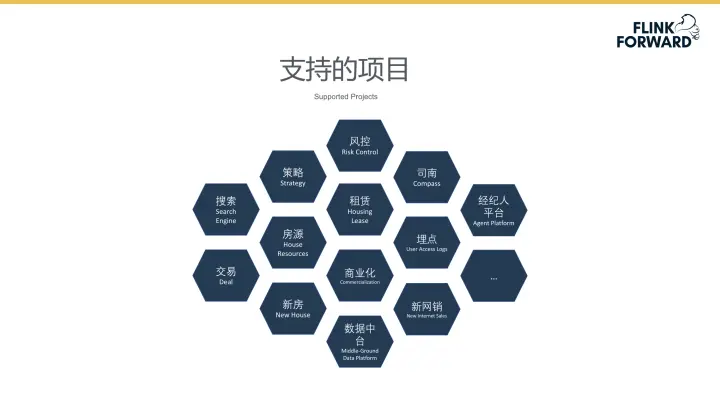 从下图所示实时计算在企业中的支持项目可以看出,目前实时计算平台支持从风控、租赁到策略搜索再到新房交易等一系列业务项目,从各个维度支持起了企业运营产生出数据实时计算业务需求。