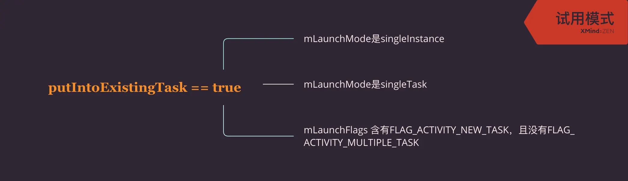 } else if (putIntoExistingTask) { //putIntoExistingTask为true时的策略