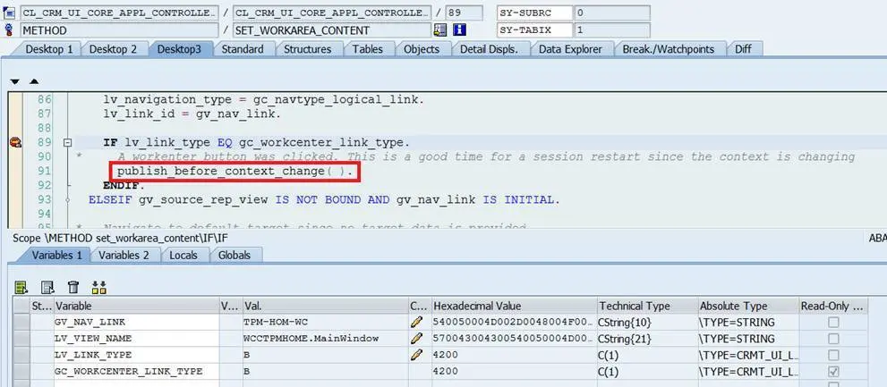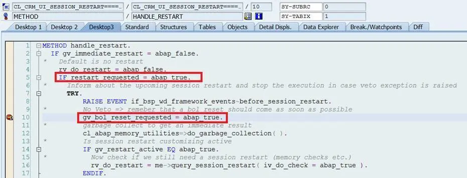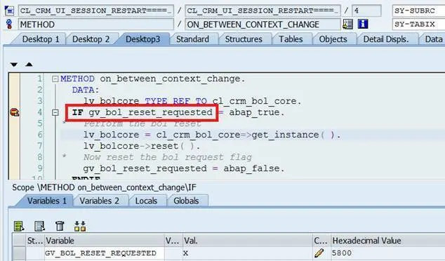 If you just click a work center view for example “Accounts”, line 91 will not be executed and thus gv_bol_reset_requested will always equal to abap_false.