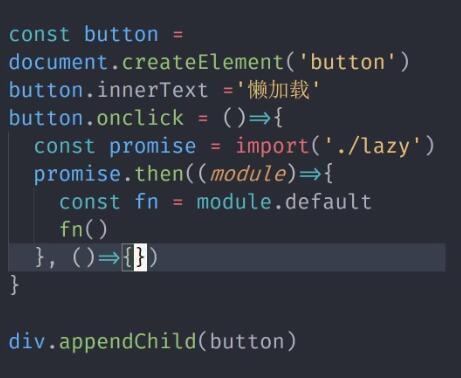 用import("路径")得到一个promise,promise的then前面写成功之后做什么,失败之后做什么