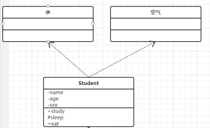 所谓依赖关系,就是构造这个类的时候,可以依赖其他的类。比如:人类依赖水和空气,学生也是人类,所以如下