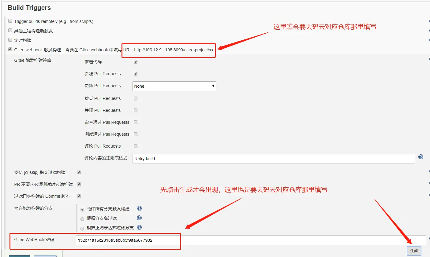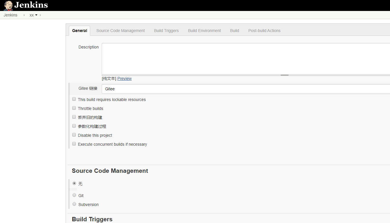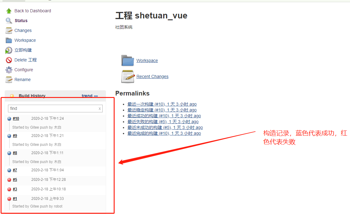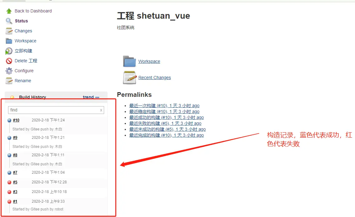 这里我没有用jenkins来去自动build。因为我认为,前端build可能会出现问题,但是如果你用jenkins自动build的话,如果出问题,前端必须进入jenkins查看构建日志才能找到问题,这里用广东话就是,偷鸡唔到蚀渣米,所以我就不那样做了,之前前端在本地build好,生成dist文件,然后把push到gitee,jenkins再拉取过来,就实现了自动部署。