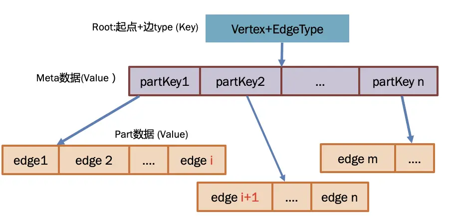 - 一个点(Vertex)和其所有相连的边组成了一数据组(Group);不同的起点和及其终点是属于不同的 Group,是存储在不同的 KV 对的;比如用户 A 的粉丝和用户 B 的粉丝,就是分成不同 KV 存储;
