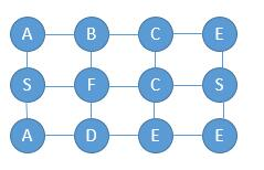 比如 SEE,从第二行最后一列的 S 出发,向下移动,再向左移动,就走出了 SEE。