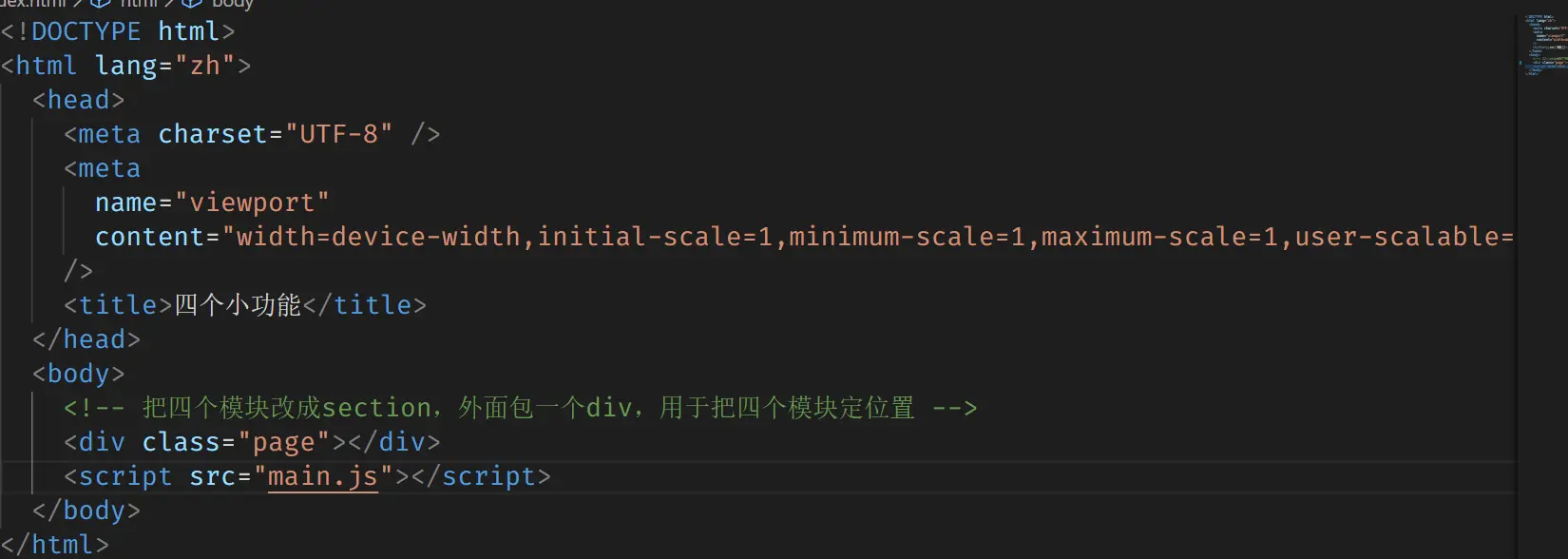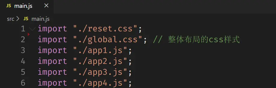 都要由main.js引入css reset 、整个页面的css、每个模块的js