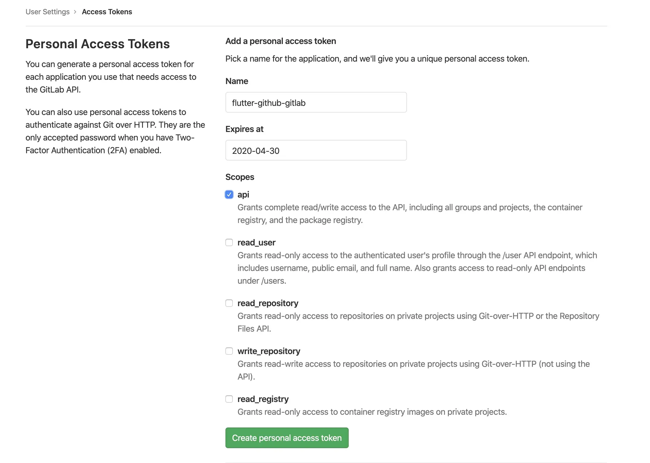 要把构建出来的 apk 发布到仓库的 Release,还需要创建一个 Personal access token 提供发布 action 访问和操作代码仓库的权限,注意不要关闭浏览器标签,因为这个 token 只有在第一次创建的时候可见。