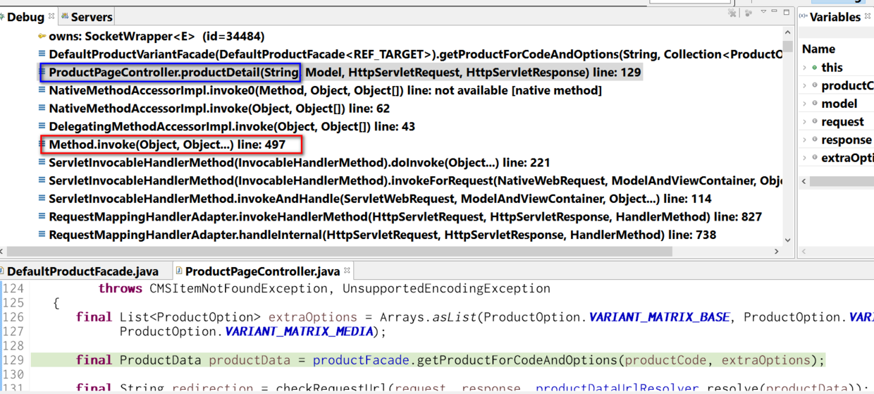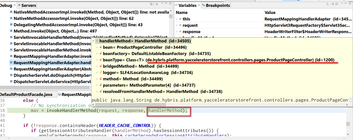 这个包含了p的url就会被Spring MVCdelegate到我通过@RequestMapping注册的controller class上。从debugger里能看出我的controller class已经被成功地determine出来了。所以从本质上讲,@RequestMapping和在ABAP里常用的把CLAS名字配到表里的方法其目的都一样:注册,只是Annotation更加优雅和简便一点而已。