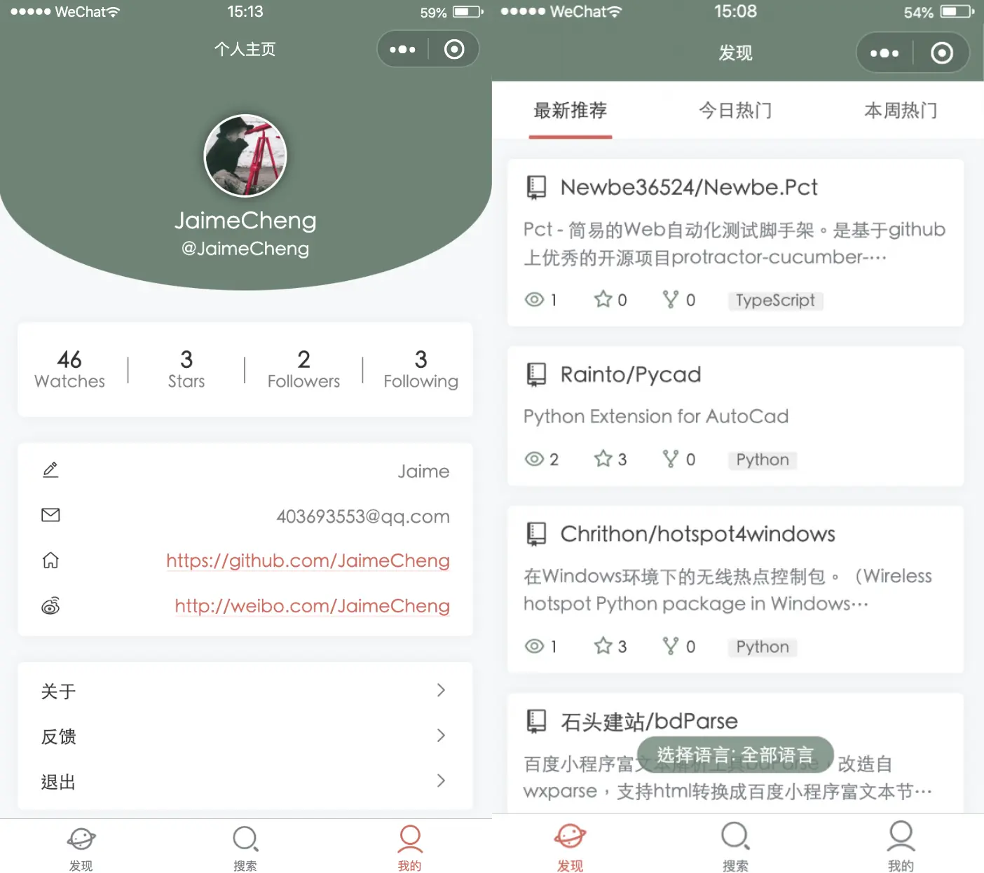 不少用户都提到过想在移动端上使用 Gitee 的需求,没想到我们官方的移动端还没有出炉,这位优秀的 Gitee 用户已经为大家带来了一款开源的 Gitee 微信小程序,我们一起来看看~