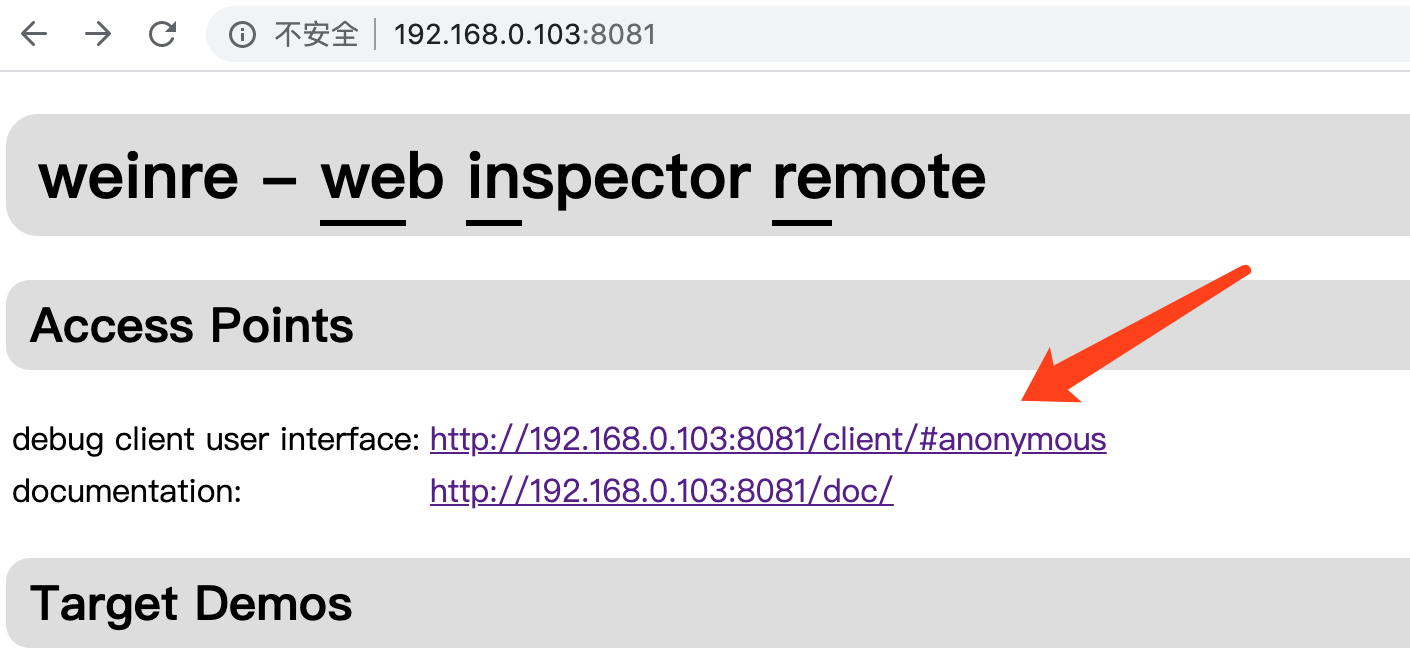 weinre --httpPort 8081 --boundHost -all- -