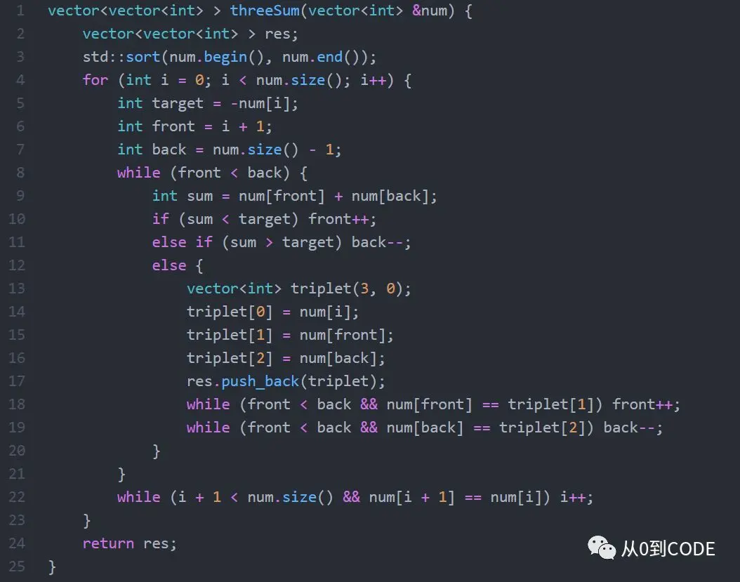 vector<vector<int>> threeSum(vector<int>& nums) {
