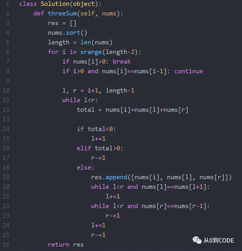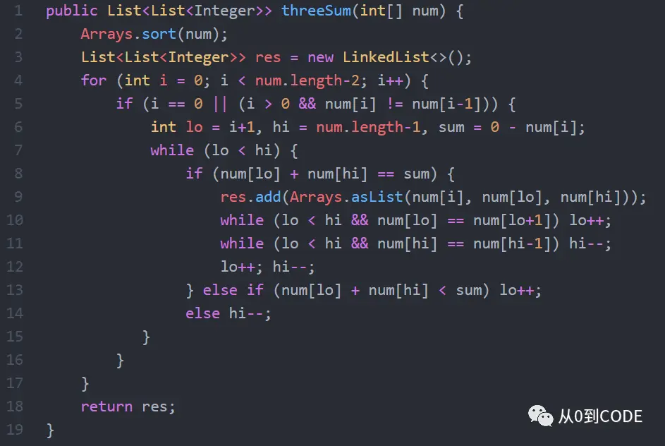 注意: 该题要求找出所有满足条件且不重复的三元组。为了避免数组中相同元素对算法最终结果的影响,我们需要先对数组进行排序(C++中可以利用<algorithm>中的 sort 算法),当然本题的重点不是在如何排序,所以大家需要注意在算法中对重复情况进行排查。