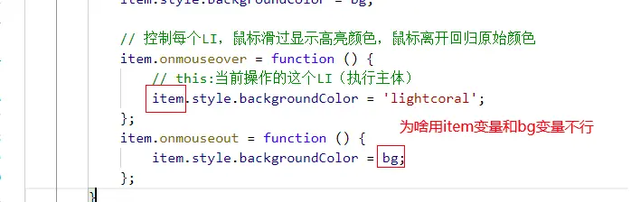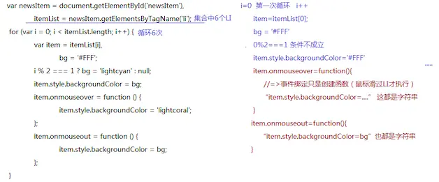 // 循环LI集合中的每一项,控制每一项的背景色和滑过需要处理的操作