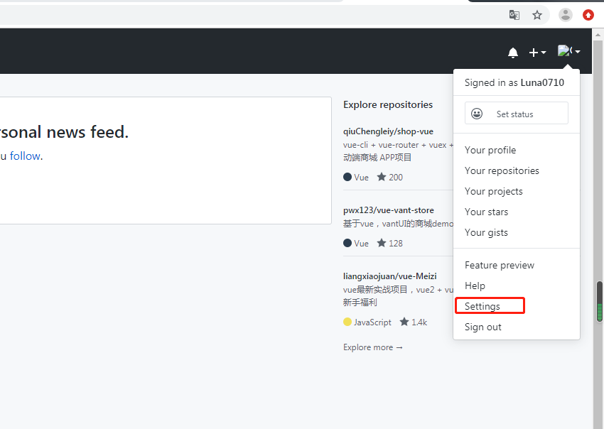 Github提交错误:Invalid username or password. fatal: Authentication failed for(亲测有效) LAN同学83185 2020-03-17 1,035 阅读1分钟 解决方案: 第一步:打开setting 第二步:选择Personal access tokens,点击 Generate new token 生成token如下 第三步:git push 代码 这时会让输入用户名:用户名就是GitHub账号,密码就是这个token,输入后就可以正常push了