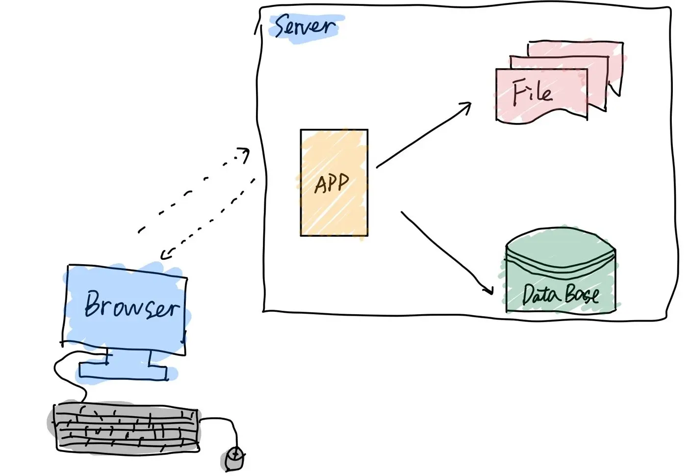 不知道大家是否听过“LAMP”这个词语,这就是早期的网站设计方案,只适用于小型的网站,如今是肯定不行的。由于开始的数据量不大,一台服务器足以支撑真个网站的运行,操作系统使用Linux,服务器用Apache,数据库使用mysql还有语言使用PHP开发。