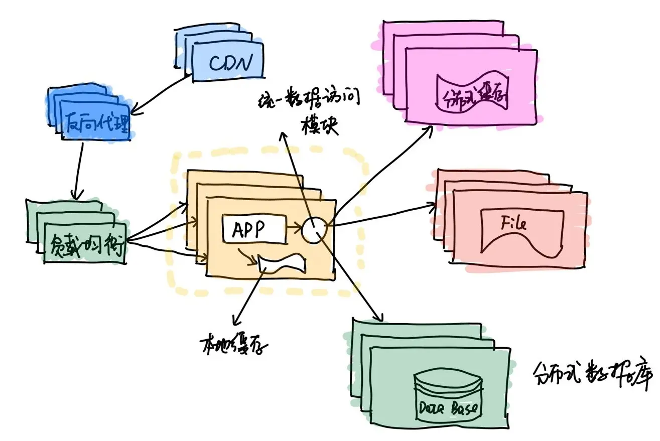 涉及到大型网站,一般用户都是海量的,需要考虑如何存储用户数据、用户浏览信息等。比如我们每天用的微信,每天发布的朋友圈以及聊天的信息都是海量的,存储在腾讯专门的服务器集群(很多服务器)。