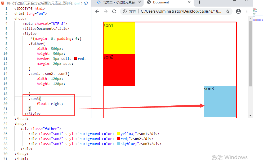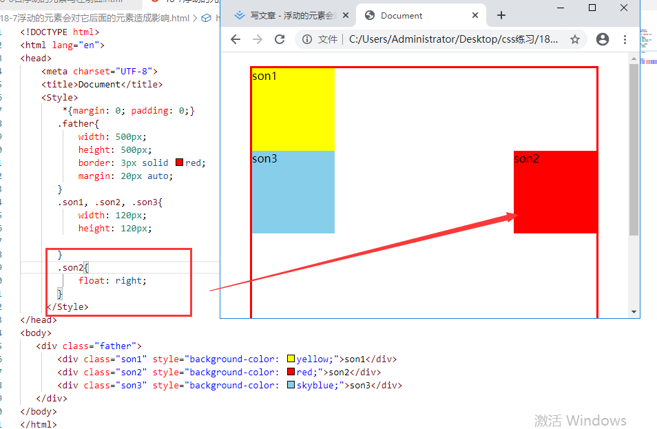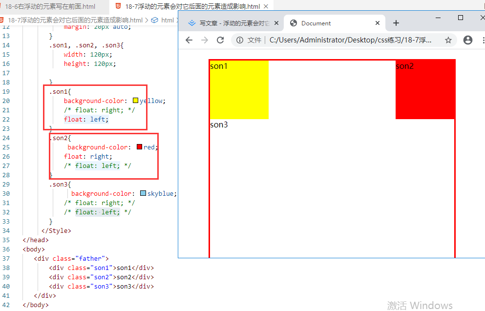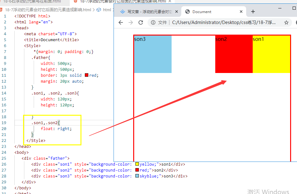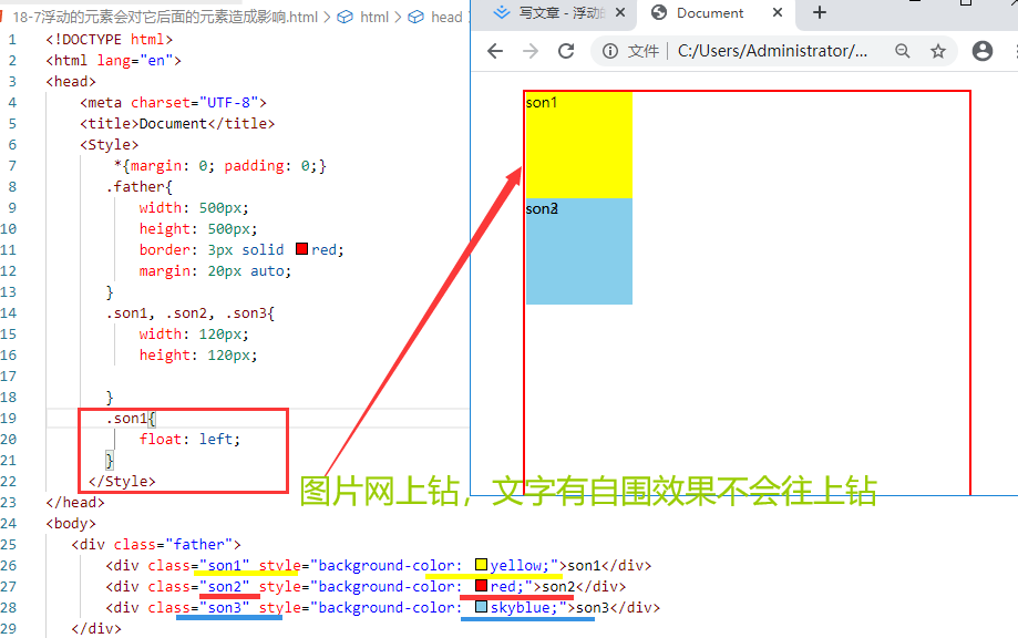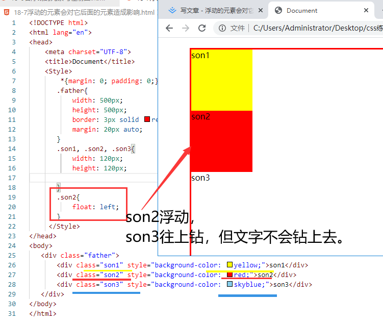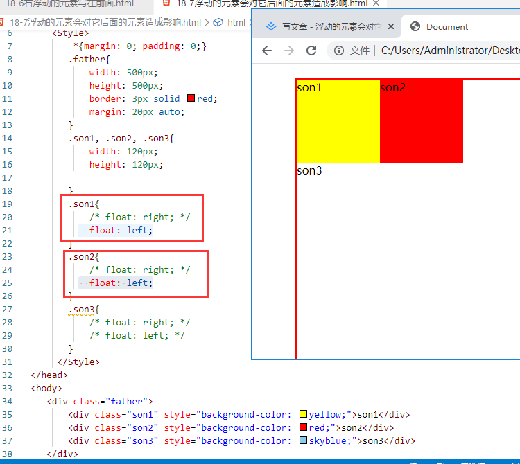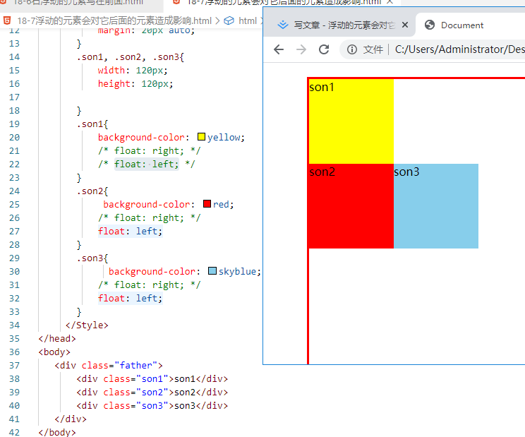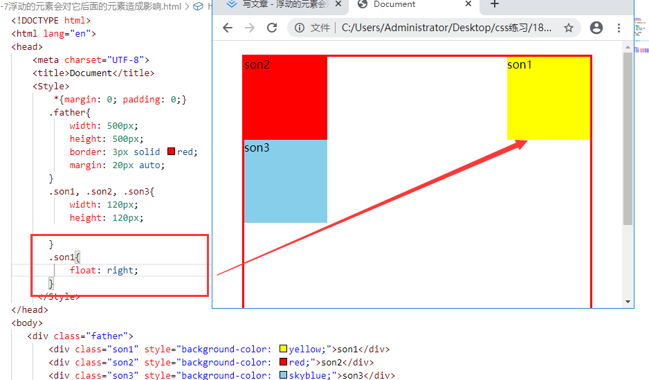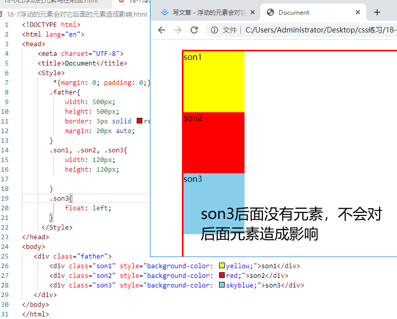 一个浮动的元素只会对它后面的元素造成影响,不可能对它前面的元素造成影响。