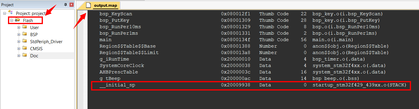 3.打开你的工程,鼠标双击工程文件。就会出来对应的.out文件查看中断向量列表在内部flash的存储。