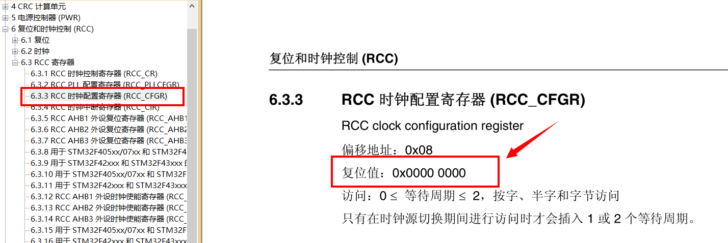 到这里系统时钟就全部配置完成了。在这两个函数中有很多的宏定义,在看代码的时候一定要注意是操作了哪一位,在对应为去找STM32fx的中文参考手册就容易理解多了。