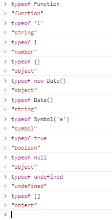 typeof是我们最常用的检测数据类型的方法,看看上面说的8种数据类型使用typeof会是什么结果。