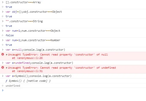 注意:null和undefined没有constructor。同样,对象的constructor也是可以改变的,比如: