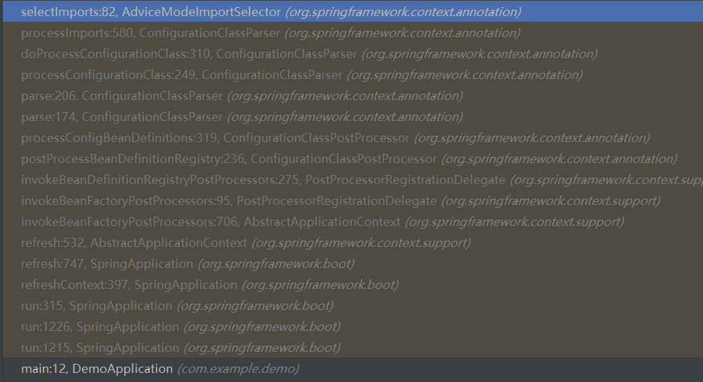 String[] importClassNames = selector.selectImports(currentSourceClass.getMetadata());