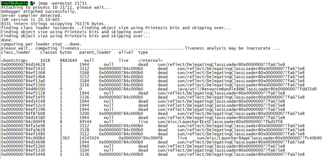 root@ubuntu:/# jmap -histo:live 21711 | more num #instances #bytes class name----------------------------------------------
