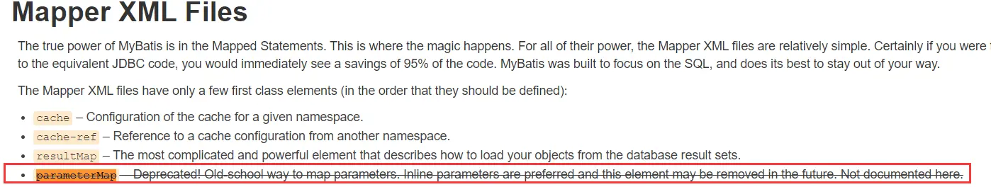 官方说明了已废弃,不再说了。 弃用!老式的参数映射方法。内联参数是首选的,这个元素将来可能会被删除。此处没有文档记录。