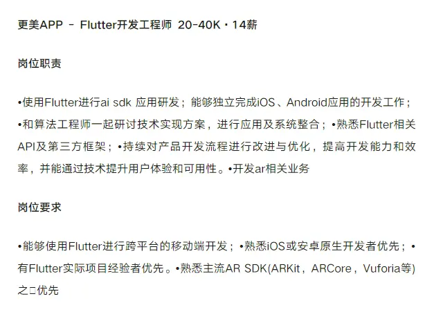 简单的招聘信息就能够看出,目前大部分企业对于flutter人才的需求,只不过薪资待遇的决定,要取决于所需求的研究层次!