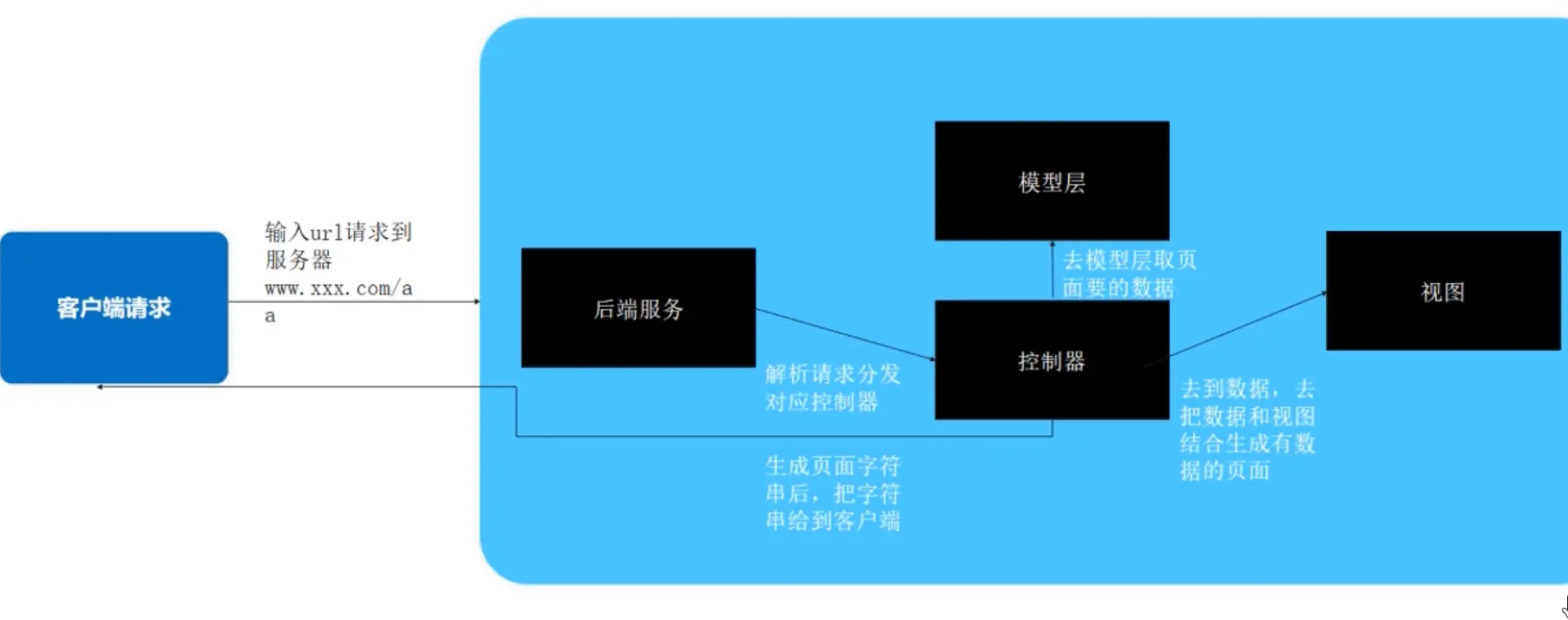 - 这种模式下,服务端压力非常大,服务端处理的业务很杂,因此需要前后端分离,保证后端只用响应数据