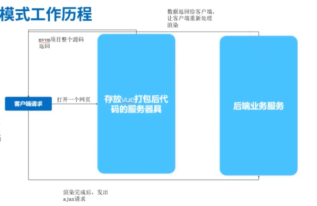 - 说白了就是在服务端使用模板引擎,在发送给客户端之前,已经把数据请求渲染到模板上了