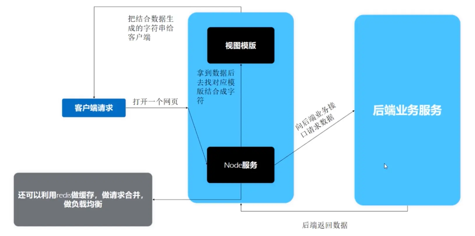 - node可以做请求合并和负载均衡,分担后端的高并发压力