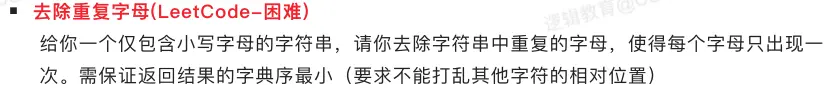 题目的意思,你去除重复字母后,需要按最小的字典序返回.并且不能打乱其他字母的相对位置;