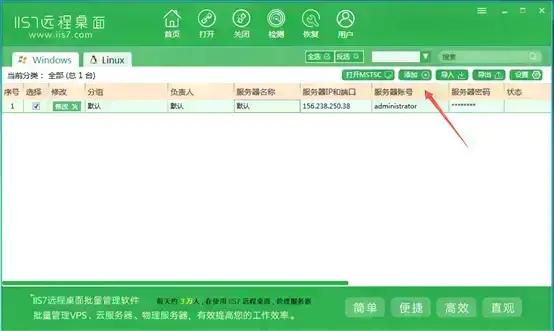 该组件一经推出受到了很多用户的拥护和喜好,所以在WINDOWSXP和2003中微软公司将该组件的启用方法进行了改革,我们通过简单的勾选就可以完成在XP和2003下远程桌面连接功能的开启。当然随着时代的进步,我们操作管理的模式也在不断的更新。为了更方便的我们管理我们的服务器,越来越多的人都会用到远程桌面管理连接服务器,让我们更方便跟简洁的用一台电脑来批量操作我们的VPS服务器,现在IIS7远程桌面管理这是我觉得比较好用的一款程序。