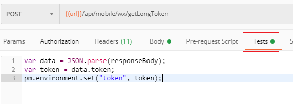 将获取的token动态添加到环境变量中,以后可以通过{{token}}动态读取token