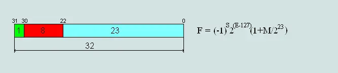 那么,为什么要加上一个掩码的大小呢? 首先我们的指数是有正负的,所以E的最高位为符号位,以8位的E为例子,使用使用普通的符号数,它能表示数字范围为 +0 ~ 127,-0~ -127,而对于一个数来当指数来讲,我们不需要2个0。所以通过加上一个掩码的大小(专业术语叫做移位存储)来解决这个问题。通过移位存储,我们能表达的数字范围为0 ~ 128,0~ -127 。