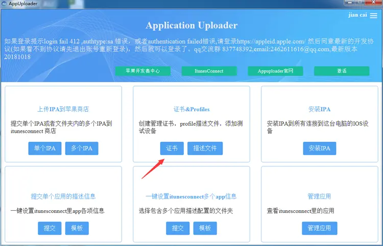 2.1、用苹果开发者账号登录appuploader软件后,选择证书进入,点击右下角+ADD选择