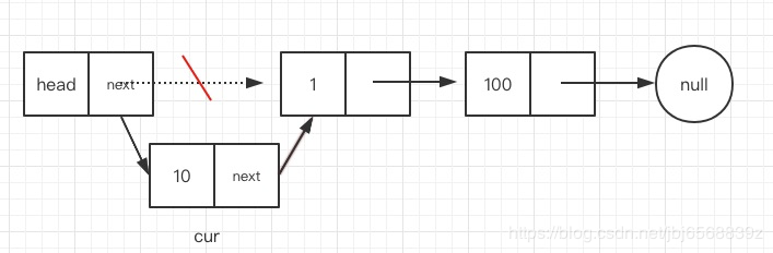 cur的next链接到我们的原始头结点 head.next节点 - 将head节点的