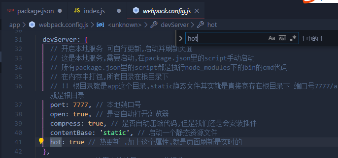 webpack.config.js的devServer的hot属性 每次刷新都是局部的css刷新,不用每次修改属性都刷新页面,提升效率