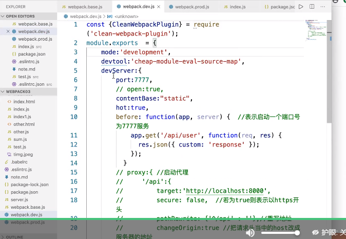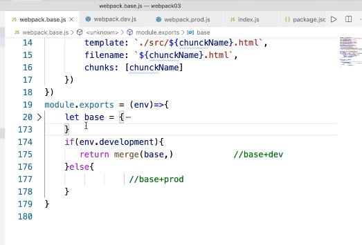 1.会拆分掉webpack.config.js文件到下面三个文件 2.如果是这三个文件,会先加载base文件,然后根据情况执行dev/prod