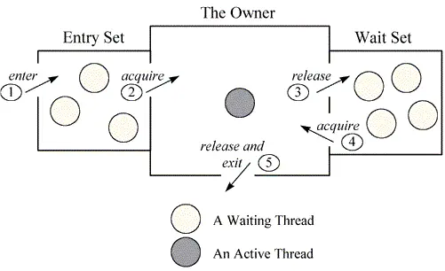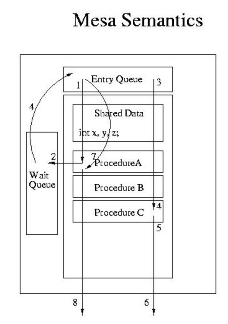 上图是MESA管程模型,可以看到线程在访问之前都要先在Entry队列排队