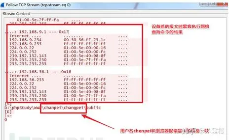 设备记录了黑客连接木马并执行网络查询命令时的报文,得到的信息与以上报错信息一致。并且看得出服务器也所处为内网的一台机器,截图看到至少该网络包含192.168.9.0和192.168.56.0两个子网,如下图: