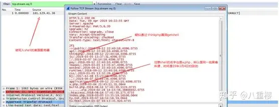 从流量角度来看,利用Thinkphp漏洞就是发一个http包。我们发现某黑客的扫描器是先写一个简单的一句话作为指纹,后续再访问这个文件看是否返回指纹信息,访问成功说明shell已经成功,基本就是发两个http包,扫描器记下成功写入的shell的网站ip和url然后手工用菜刀连接,进行后续操作。