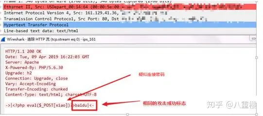黑客在浏览美国服务器上x.php(webshell)文件内容时,设备记录了x.php的密码为xiao,并且标志位也是baidu。